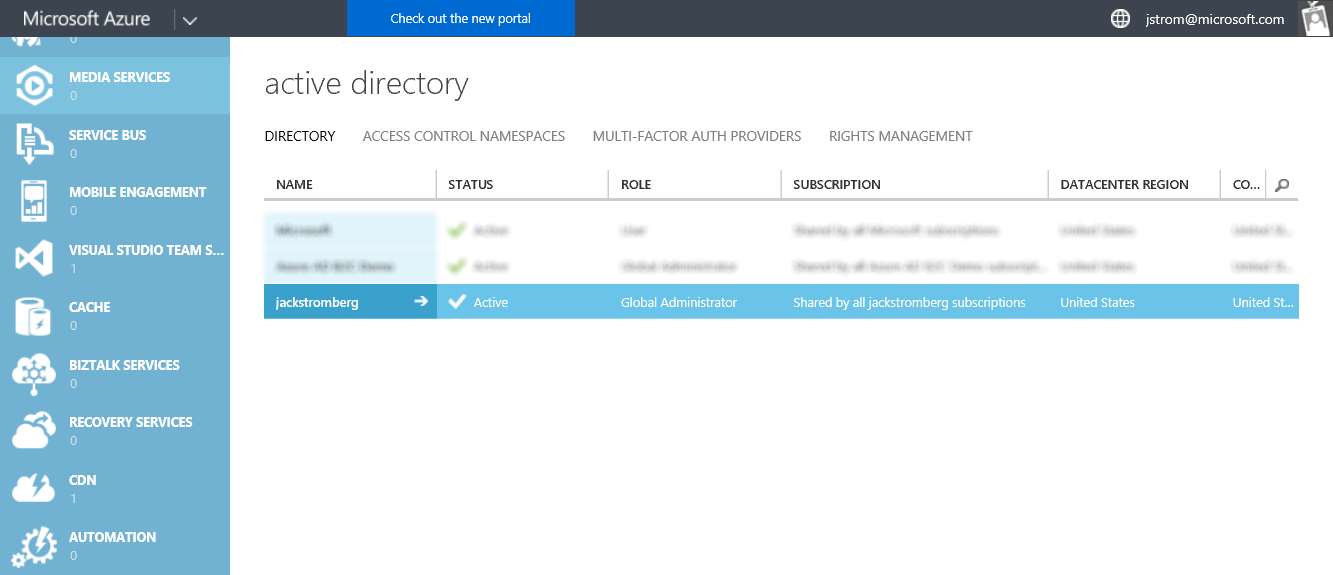 AD Administration in the new Azure Portal - Directory FAQ